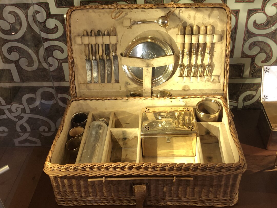 No chalé e em seus jardins Elise e seu marido viviam o sonho romântico de uma vida em contato com a natureza. Cestas de pic nic foram especialmente projetadas pela Maison Boudet para a dupla e seus convidados. Uma mala de vime com arreios de couro carregadas de louça e talheres de prata, copos de chifre com monograma real e garrafas de cristal com tampa de prata para transportar os vinhos especiais. Tudo muito chique, mas espantosamente simples se considerarmos os pic nics reais ingleses e franceses.
